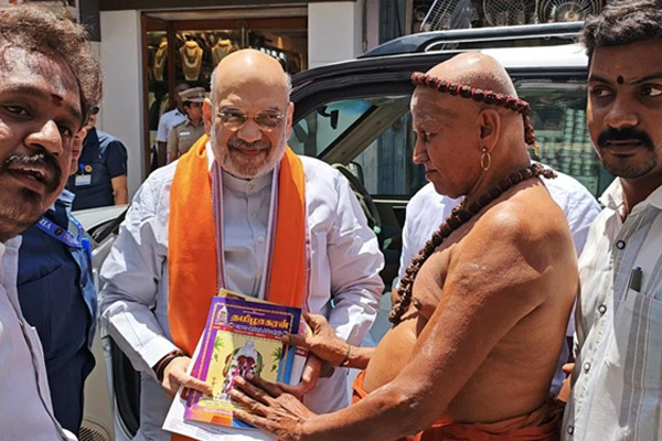 மதுரையில் நடைபெற்ற பா.ஜ.க. மாநில நிர்வாகிகள் கூட்டத்தில் பங்கேற்பதற்காக மத்திய உள்துறை அமைச்சர் அமித் ஷா மதுரை சென்றார். அவர் நேற்று காலை மதுரை மீனாட்சியம்மன் கோயிலுக்கு சென்று வழிபட்டார். முன்னதாக மீனாட்சியம்மன் கோயிலுக்கு சென்ற அமித் ஷாவை மதுரை ஆதீனம் சார்பில் சால்வை அணிவித்து வரவேற்று புத்தகம் மற்றும் மனு வழங்கப்பட்டது.