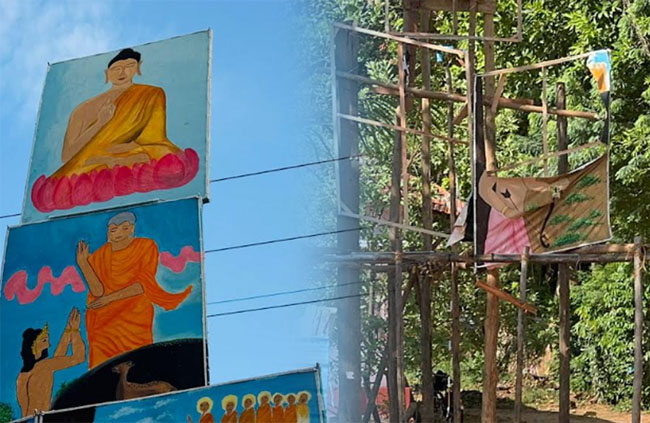 சில நாட்களுக்கு முன் இரவோடு இரவாக அங்கு பௌத்த சமயத்தை பிரதிபலிக்கும் வெசாக் தோரண அமைப்பொன்று உருவாக்கப்பட்டிருந்தது.