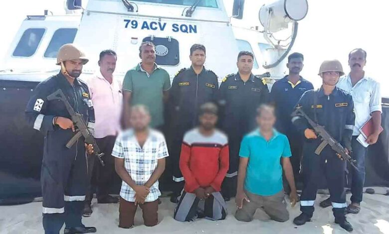 மேலும் மூவரையும் கைதுசெய்து தனுஷ்கோடி அரிச்சல்முனை கடற்கரைக்கு அழைத்து வந்து கரையோர பொலிஸாரிடம் ஒப்படைத்தனர்.