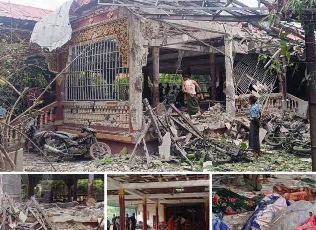 மியான்மரில் உள்ள ஒரு பௌத்த ஆலயத்தின் மீது நடத்தப்பட்ட வான்வழித் தாக்குதலில் 4 குழந்தைகள் உட்பட 23 பேர் கொல்லப்பட்டுள்ளதாக வெளிநாட்டு ஊடகங்கள் செய்தி வெளியிட்டுள்ளன.