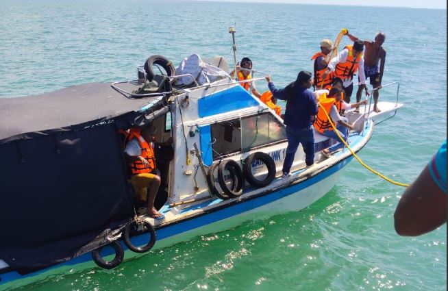 யாழில் சுற்றுலா பயணிகளை அழைத்து வந்த படகு கடலில் மூழ்கியது – 14 பேர் மயிரிழையில் உயிர்பிழைப்பு