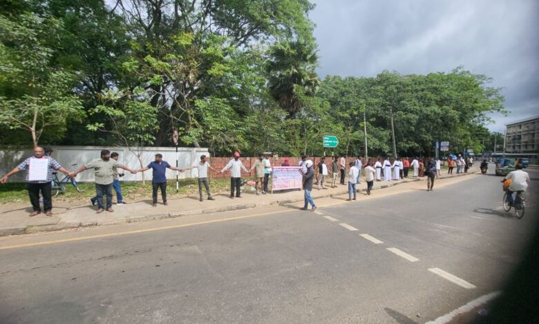 மன்னார் காற்றாலை திட்டத்தை நிறுத்துங்கள்! வவுனியாவில் மனிதச்சங்கிலி போராட்டம்