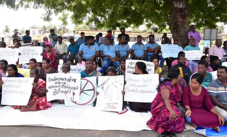 மன்னாரில் மக்களின் எதிர்ப்பை மீறி 2ஆவது கட்டமாக முன்னெடுக்கப்பட்டு வரும் காற்றாலை மின் கோபுரம் அமைக்கும் நடவடிக்கை மற்றும் கனிய மணல் அகழ்வு போன்றவற்றிக்கு எதிர்ப்பு தெரிவிக்கும் வகையில் தொடர்ச்சியாக மன்னார் பஜார் பகுதியில் போராட்டம் முன்னெடுக்கப்பட்டு வரும் நிலையில்  (11) 9 ஆவது நாளாக முன்னெடுக்கப்பட்டு வரும் போராட்டத்திற்கு வலு சேர்க்கும் வகையில் பல கிராம மக்கள் கலந்து கொண்டு போராட்டத்தை முன்னெடுத்து வருகின்றனர்.