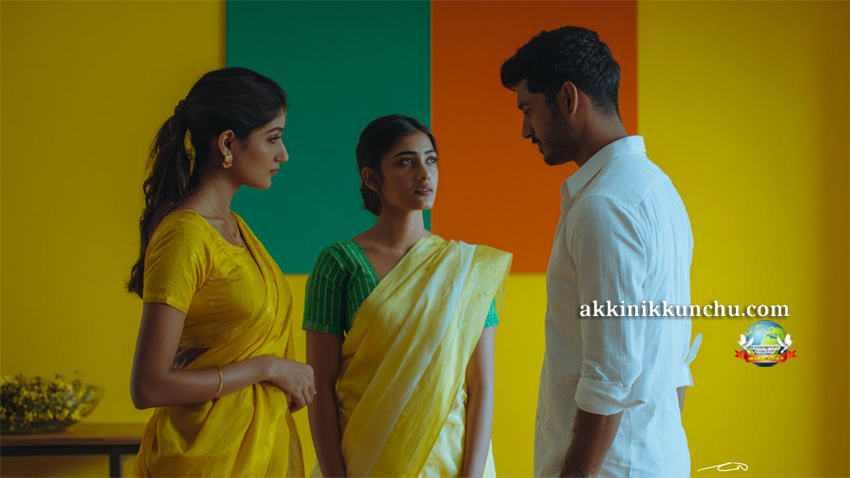 அப்பொழுது சரவணன் சாரிணியின் தாயார் சசிகலா சமையல் முடிஞ்சிட்டுது சாப்பிட வாங்கோ எனக் கூப்பிட்டுக் கொண்டே வீட்டுக்கு வெளியே மதுசா,சாரிணி,சரவணன் ஆகியோர் இருந்த பந்தி பந்தி போன்ற அறையை நோக்கி வருகிறாள்.