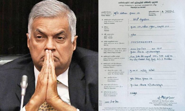 ரணில் விக்ரமசிங்க கைது செய்யப்பட்டமை தொடர்பான ரசீது வெளியானது!