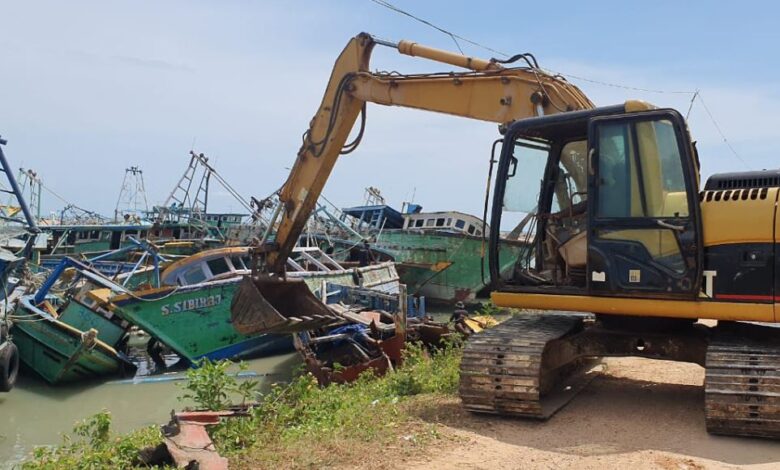 இந்நிலையிலையே நாளைய தினம் திங்கட்கிழமை ஜனாதிபதி மயிலிட்டி துறை முக பகுதிக்கு விஜயம் செய்யவுள்ள நிலையில், அரசுடைமையாக்கப்பட்ட 33 படகுகளையும் ஜே.சி.பி வாகனம் மூலம் அடித்து உடைத்து அவற்றை அச்சுவேலி தொழில் பேட்டைக்கு எடுத்து செல்லும் பணிகள் முன்னெடுக்கப்பட்டுள்ளது.