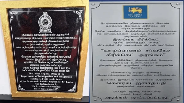 இதேவேளை, யாழில் அமைக்கப்படும் சர்வதேச தர கிரிக்கெட் மைதானம் அமைப்பதற்கான அடிக்கல் நாட்டும் வைபவத்தில் ஜனாதிபதி அநுரகுமார திஸாநாயக்க இன்று கலந்து கொண்டிருந்தார். இந்த மைதானத்துக்கான திறப்பு நினைவுபலகையில் ஜனாதிபதியின் பெயர் பொறிக்கப்படாமை பலரின் அவதானத்தை பெற்றுள்ளது.