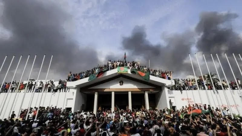 இறுதியில் மாணவ போராட்டக்காரர்கள் பிரதமர் இல்லமான ஹணபபானுக்குள் (Ganabhaban) நுழைந்து மொத்த வீட்டையும் சூறையாடி அழித்தனர். ஆயினும் இதற்கு முன்பே பங்களாதேஷ் பிரதமர் ஷேக் ஹசீனா தமது பதவியை ராஜினாமா செய்துவிட்டு, அவருடைய சகோதரி ஷேக் ரெஹானாவுடன் வங்கதேசத்தை விட்டு ஹெலிகாப்டர் வாயிலாக இந்தியாவுக்குத் தப்பி வெளியேறி உள்ளார்.