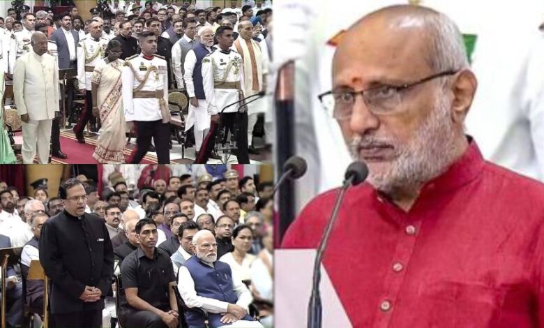 சி.பி.ராதாகிருஷ்ணன், புதுடில்லியில் உள்ள ஜனாதிபதி மாளிகையான ராஷ்டிரபதி பவனில் ஜனாதிபதி திரவுபதி முர்மு முன்னிலையில் பதவியேற்றார்.