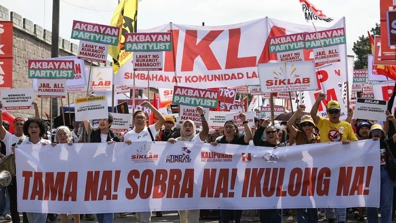 பிலிப்பைன்ஸில் ஆயிரக்கணக்கான போராட்டக்காரர்கள் வீதியில் இறங்கி ஆர்ப்பாட்டம் ஒன்றை முன்னெடுத்துள்ளனர்.