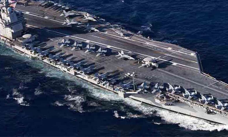 USS Gerald R Ford என்று பெயரிடப்பட்ட இந்த விமானம் தாங்கி கப்பல், 90 விமானங்கள் வரை கொண்டு செல்லக்கூடிய உலகின் மிகப் பெரிய அமெரிக்கப் போர்க் கப்பலாகும்.