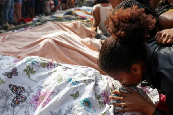 புதன்கிழமை, ரியோ நகரின் தெருக்களில் பலர் துயரமாக கூடினர்; சுற்றி வளைப்பு நடந்த பகுதிகளில் சடலங்கள் சாலைகளில் அடுக்கி வைக்கப்பட்டிருந்தன.