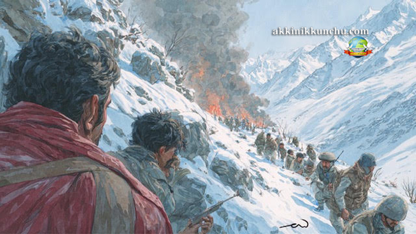 ஆயுதங்களையும் தேவையான ஆட்களையும் தீவிரவாதிகள் ஆங்காங்கே குவித்து வைத்திருந்தனர். பனித்தூறல்களை துடைத்துவிட்டு சூரியகதிர்கள் மெல்ல உலாவிக்கொண்டு இருந்தன. இந்திய ராணுவ வீரர்கள் எல்லாவற்றுக்கும் தயார் நிலையில் இருந்தார்கள். வழக்கம் போல பதுங்கு குழிகள் வெட்டி வைக்கப்பட்டிருந்தன. மணல் மூட்டைகள் ஆங்காங்கே தடுப்புகளாக அடுக்கப்பட்டு இருந்தன. இடுக்குகளிலும் மலை முடுக்குகளிலும் வீரர்கள் பதுங்கி தங்களை காத்துக்கொண்டும் எதிரிகளை தாக்குவதற்கும் தயாராக இருந்தனர்.