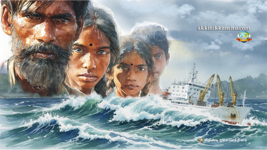 குடும்பத்துடன் கப்பலில் தங்களுக்கான இருக்கையில் அமர்ந்தார். கொண்டு வந்த பெட்டி படுக்கைகளை ஓரமாக வைத்தார். அலைகள் மோதி மோதி கப்பலை அசைக்கத் தொடங்கின. கப்பல விட்டு எறங்குரவரைக்கும் அங்கிட்டும் இங்கிட்டும் ஓடாம இருக்கனும்…. பிள்ளைகளிடம் கண்டிப்புடன் கூறியிருந்தார். நங்கோரியில் பயணிப்பது என்பது சந்தை கடைகளுக்குள் இருப்பது போன்று. இறங்கும் வரை கசமுசானு கூச்சலும் குழப்பமுமாகத்தான் இருக்கும்.