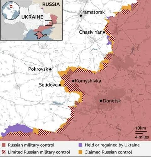 ரஷ்யப் படைகள் கிழக்கு உக்ரேனிய நகரமான போக்ரோவ்ஸ்கை (Pokrovsk) இறுதியாகக் கைப்பற்றி இருப்பதாகத் தெரிகிறது. இது ஜனாதிபதி விளாடிமிர் புட்டின் கடந்த 21 மாதங்களாக அதிக விலை கொடுத்துத் தேடிய ஒரு அடையாள (Symbolic Victory) வெற்றியாகும்.