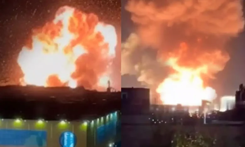 இந்த தாக்குதலில் அப்பகுதியில் தீ கொழுந்து விட்டு எரிந்த காட்சிகள் வெளியாகி உள்ளன.