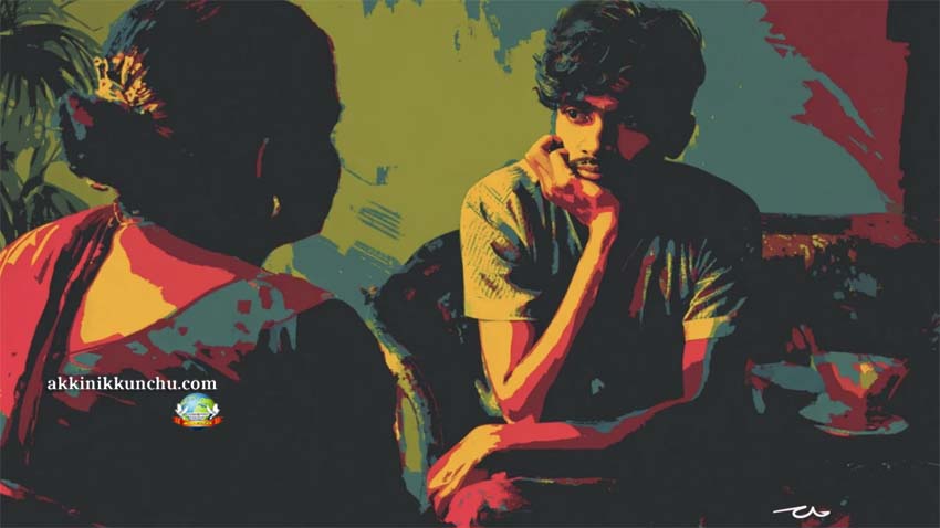 “இன்னைக்கு என்னம்மா ஆச்சு உனக்கு… அதே மாறி விட்ற வேண்டியததானே…” தேங்காய் பூ துண்டால் முகத்தை துடைத்துக் கொண்டு இருந்தவனின் தலையை மெதுவாக வருடிக் கொண்டே இப்படி சொன்னாள்….
