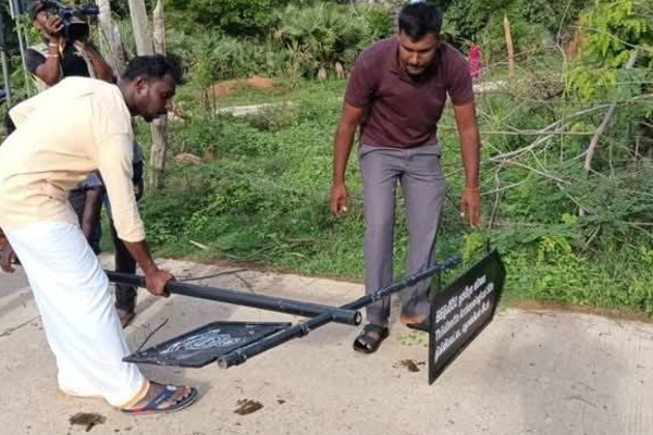 பொலிஸாரின் உதவியுடன் இந்த பெயர்ப்பலகை நடும் பணிகள் முன்னெடுக்கப்படவிருந்த நிலையில் பொதுமக்களின் கடுமையான எதிர்ப்பு காரணமாக குறித்த பணியை இடைநிறுத்தியதுடன் அங்கிருந்தவர்களின் விபரங்களை பொலிஸார் சேகரித்துச் சென்றிருந்தனர்.