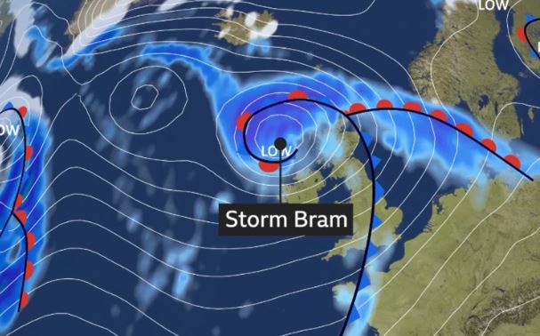 ஐரிஷ் வானிலை ஆய்வு மையத்தால் பெயரிடப்பட்ட பிராம் புயல், இன்று செவ்வாய்க்கிழமை வேகமாக உருவாகி, இங்கிலாந்தின் வடக்கே மேற்கே நகர்ந்து, பலத்த மழையையுடன், பலத்த காற்று வீசும் எனவும் தெரிவிக்கப்பட்டுள்ளது.