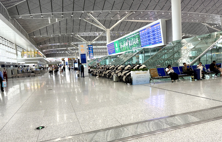 செக்யூரிடி செக் முடிந்து தங்கும் இடத்துக்கு வரவேண்டும். தங்கும் இடம் செல்ல நீண்ட நெடுந்தூர வழி செல்கிறது. அந்த வழியின் இருபுறமும் தங்கும் இடங்கள் உள்ளன. நம்மிடம் உள்ள பயணச்சீட்டில் ரயிலின் எண் ப்ளாட்பாம் எண் போன்ற தகவல்கள் இருக்கும். இந்த தகவலை சீன மொழியிலும் ஆங்கிலத்திலும் தெரிவிக்கும் அறிவிப்புகள் இருக்கும்.