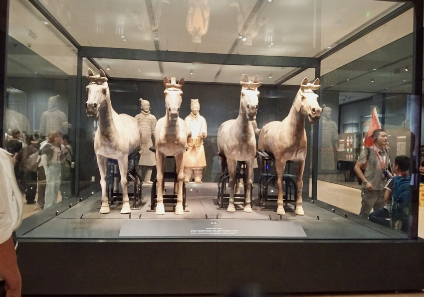 அடுத்த நாள் பயணம் டெரகோட்டா வாரியர்ஸ் என்ற சுற்றுலாத்தளம் செல்ல முடிவு செய்திருந்தோம். சீனாவின் முதல் பேரரசானான கி. மு. இருநூற்றின் பிற்பகுதியில் வாழ்ந்த க்யுன் ஷி குவாங்குக்கு இறந்தபின் மறுபிறப்பு எடுத்து வருவோம் என்ற நம்பிக்கை இருந்தது. அந்த அடிப்படையில் அவர் இறந்தபின் மறுபிறவி எடுத்து அவர் வரும்போது அவரைப் பாதுகாக்க சுட்ட மண்சிற்பங்களாக இராணுவ வீரர்கள், குதிரைப்படை, தேர்கள் முதலியவற்றை அவருடன் சேர்த்து புதைத்தார்களாம்.