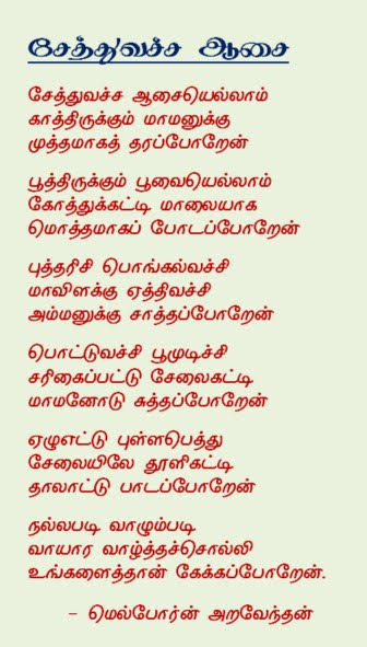 கவிதைகள்“சேத்துவச்ச ஆசை”… கவிதை… மெல்போர்ன் அறவேந்தன்December 21, 20250 December 21, 20250 Facebook Twitter LinkedIn Messenger Messenger WhatsApp Viber