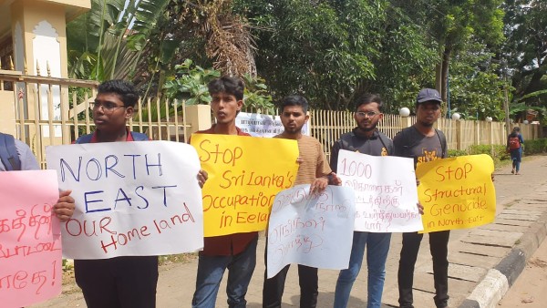 தையிட்டி விகாரை அமைக்கப்பட்டதை எதிர்த்து யாழ்ப்பாண பல்கலைக்கழக மாணவர்கள் பல்கலைக்கழகத்துக்கு முன்பாக போராட்டத்தில் ஈடுபட்டனர்.