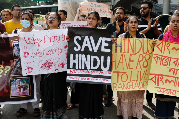 வங்கதேசத்தில் ஹிந்துக்கள், கிறிஸ்தவா்கள், பௌத்தா்களுக்கு எதிராக தொடா்ச்சியான வன்முறைச் சம்பவங்கள் நடைபெறுவது குறித்து இந்திய வெளியுறவு அமைச்சகத்தின் செய்தித் தொடா்பாளா் ரண்தீா் ஜெய்ஸ்வால் கடந்த வெள்ளிக்கிழமை கவலை தெரிவித்தாா்.