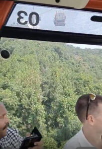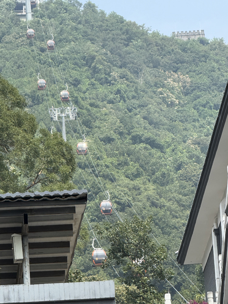 அங்கிருந்து சற்று தூரம் நடந்து அங்கிருந்து ரோப் காரில் (தொங்கூர்தி) சென்றால் சீனப் பெருஞ்சுவரில் ஏறி நடக்கலாம். ரோப் காரில் இருந்து இறங்கியும் சற்று தூரம் நடந்து சென்றே சீனப் பெருஞ்சுவரில் ஏறவேண்டும். சீனப் பெருஞ்சவரில் ஏறுவது அவ்வளவு எளிதல்ல. அறுபது வயதைக் கடந்தவர்களை மாற்றுப் பாதையில் செல்லுமாறு அங்கிருந்த காவலர்கள் சொன்னார்கள். மாற்றுப்பாதை வழியாக செல்ல வேண்டுமானால் கொஞ்ச தூரம் நடக்க வேண்டும்.