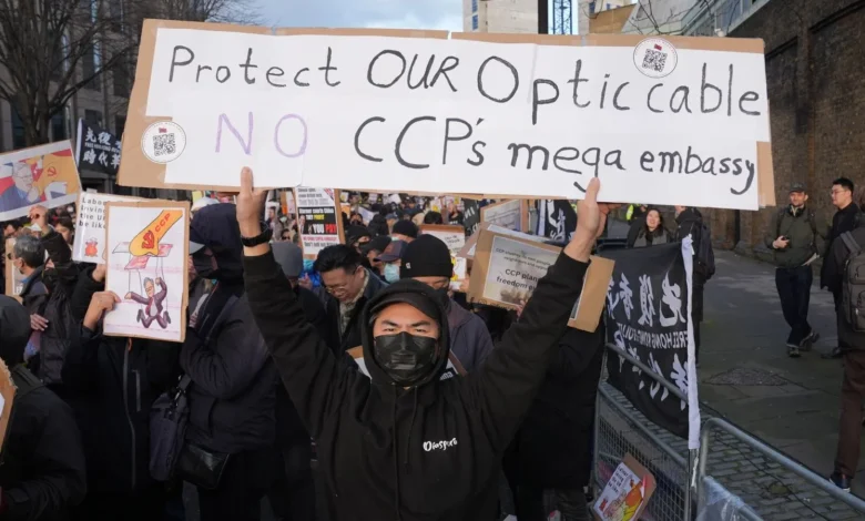 லண்டனில் அமைக்கப்படவுள்ள சீன சுப்பர் தூதரகத்திற்கு எதிர்ப்பு தெரிவித்து மக்கள் போராட்டம்!