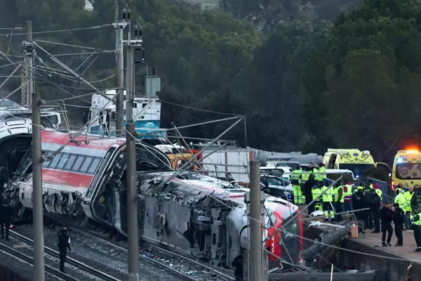மலகாவிலிருந்து மாட்ரிட் நோக்கிச் சென்று கொண்டிருந்த அதிவேக ரெயில, தெற்கு அண்டலூசியாவில் உள்ள அடமுஸ் அருகே திடீரென தடம் புரண்டது. தடம் புரண்ட அந்த ரெயில் பக்கத்து தண்டவாளத்தில் வந்த மற்றொரு ரெயிலின் மீது பயங்கரமாக மோதியது.