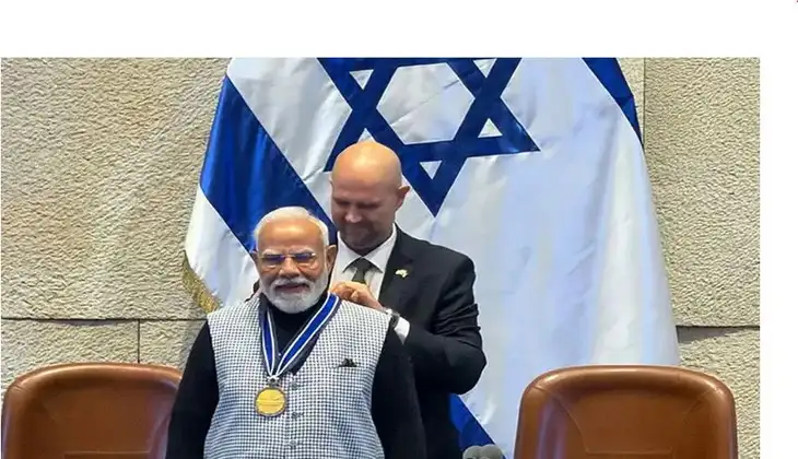 இஸ்ரேல் நாட்டிற்கு இரண்டு நாள் அரசுமுறைப் பயணமாகச் சென்றுள்ள இந்தியப் பிரதமர் நரேந்திர மோடிக்கு, அந்நாட்டின் நாடாளுமன்றமான ‘நெசெட்’ (Knesset) உயரிய கௌரவத்தை வழங்கியுள்ளது. நேற்று மாலை இஸ்ரேல் நாடாளுமன்றத்தில் உரையாற்றிய பிரதமர் மோடிக்கு, அந்நாட்டின் நாடாளுமன்றச் சபாநாயகர் அமீர் ஒகானா, ‘நெசெட் சபாநாயகர்’ (Speaker of the Knesset Medal) பதக்கத்தை வழங்கிச் சிறப்பித்தார்.