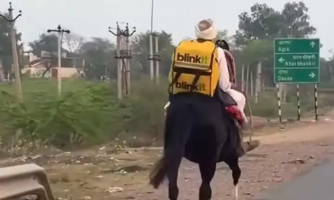 ஆனால், ராஜஸ்தானில் ஒருவர் டெலிவரி பையை முதுகில் சுமந்து குதிரையில் சவாரி செய்து ஆர்டர்களை வழங்க செல்வது அனைவரின் கவனத்தையும் ஈர்த்துள்ளது.