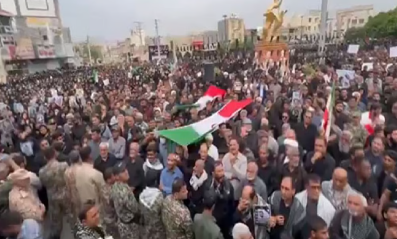 பல்வேறு தெருக்களிலும் ஆண்கள், பெண்கள் என பல்லாயிரக்கணக்கானோர் இந்த ஊர்வலத்தில் பங்கேற்றனர். ஈரான் மீது நடத்தப்படும் தாக்குதலை நிறுத்தும்படி இந்தியா, ரஷ்யா, சீனா உள்ளிட்ட நாடுகள் கூறி வருகின்றன. ஐ.நா. அமைப்பும் கவலை தெரிவித்து உள்ளது. எனினும், போரானது தொடர்ந்து நடந்து வருகிறது.