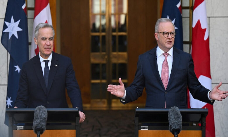 மத்திய கிழக்கில் போர் தீவிரமடைந்து வரும் நிலையில், அவுஸ்திரேலியப் பிரதமர் அந்தோனி அல்பானிஸ் மற்றும் கனேடியப் பிரதமர் மார்க் கார்னி ஆகியோர் கன்பெராவில் கூட்டாகச் செய்தியாளர்களை சந்தித்த போதே அவர் இதனை குறிப்பிட்டுள்ளனர்.