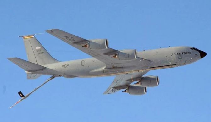 அமெரிக்க விமானப்படையின் கூற்றுப்படி, KC-135 விமானம் வானில் மற்ற விமானங்களுக்கு எரிபொருள் நிரப்பப் பயன்படுகிறது.
