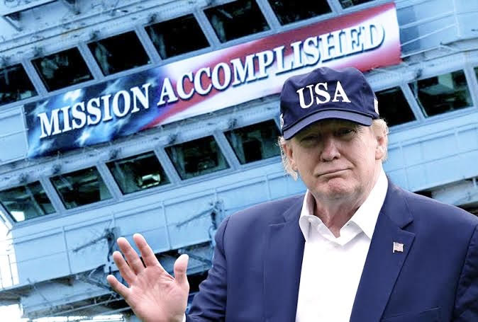 இந்த போரின் முதல் நாளிலேயே அமெரிக்க வெற்றி பெற்றது என்று டிரம்ப் கூறியுள்ளார். ஈரானில் வான்வழித் தாக்குதல்கள் தொடங்கிய 12 நாட்களுக்குப் பிறகும் அதனையே டிரம்ப் தொடர்ந்து கடைப்பிடித்து வருகிறார். “நாங்கள் வென்றோம். நாங்கள் பந்தயத்தில் வெற்றி பெற்றோம். முதல் ஒரு மணி நேரத்திலேயே ஈரான் முடிந்துவிட்டது” என டிரம்ப் கூறிய வார்த்தைகள் உலகளவில் நகைப்புக்கிடமாகி உள்ளது.