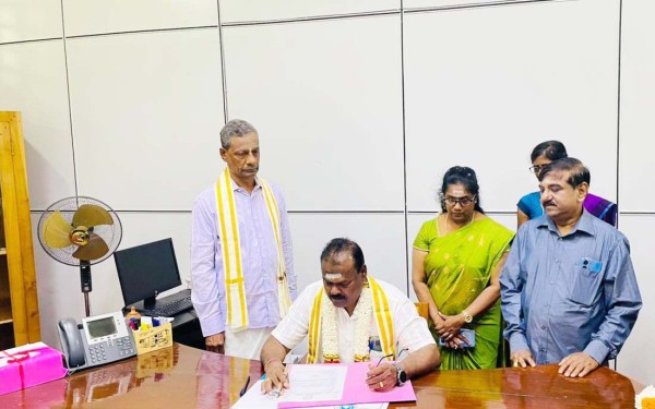 பல்கலைக்கழக வளாகத்தினுள் அமைந்துள்ள ஸ்ரீ பார்வதி சமேத பரமேஸ்வரன் கோயிலில் நடைபெற்ற சிறப்பு அபிஷேக வழிபாட்டைத் தொடர்ந்து, அவர் காலை 9:30 மணிக்கு துணைவேந்தர் அலுவலகத்தில் தனது கடமைகளை முறைப்படி ஆரம்பித்தார்.