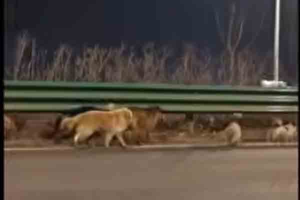 ஒரு நெடுஞ்சாலையில் சுற்றித் திரிந்த ஏழு நாய்கள் கொண்ட கூட்டத்தின் காணொளி சமூக ஊடகங்களில் வைரலானதைத் தொடர்ந்து, அது உலகின் கவனத்தை ஈர்த்துள்ளது. வடமேற்கு சீனாவின் ஜிலின் மாகாணத்திலுள்ள தலைநகர் சோங்கிங்கில், லேயே இந்த வீடியோ எடுக்கப்பட்டுள்ளது.