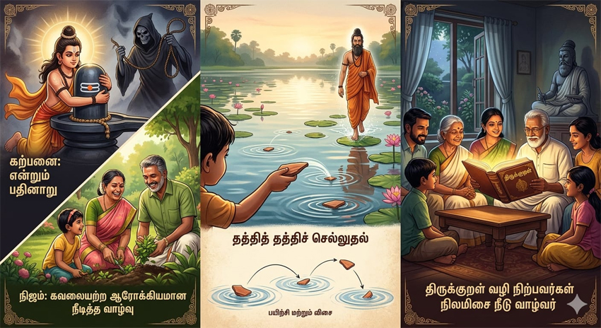 நீடுவாழ்வார் என்றால் என்ன? மார்க்கண்டேயன் போல் என்றும் பதினாறு வயதாக வாழ்வதா? அப்படி வாழத்தான் முடியுமா? அவருக்கு ஏதோ ஜாக்பாட் அடித்தது வாழ்ந்து கொண்டிருக்கிறார். நாம் எல்லோரும் நினைப்பதுபோல் இத்த கலிகாலத்தில் அப்படி ஒரு ஜாக்பாட் அடிக்குமா? அப்படி இருந்தால் இங்கு நம் கண் முன்னே ஏகப்பட்ட மார்க்கண்டேயன்கள் சுற்றிக் கொண்டிருப்பார்கள்.