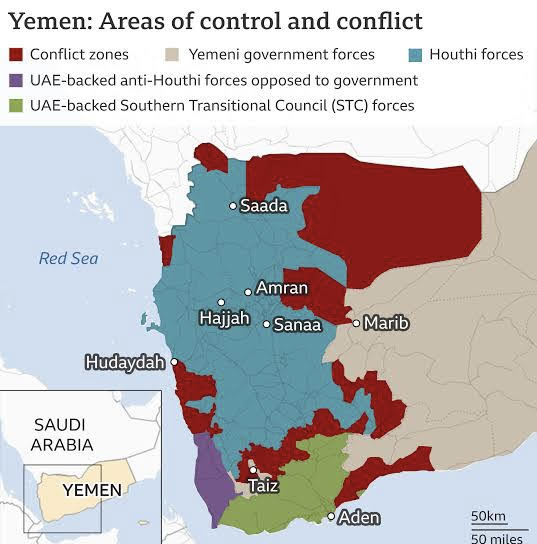 ஹவுதி படைகள் சவுதி அரேபியாவிற்கு எதிரான போரில் ஈடுபட்டு, தற்போது செங்கடல் பகுதியில் வர்த்தக கப்பல்களை இலக்கு வைத்து செயல்படுகிறார்கள்.
