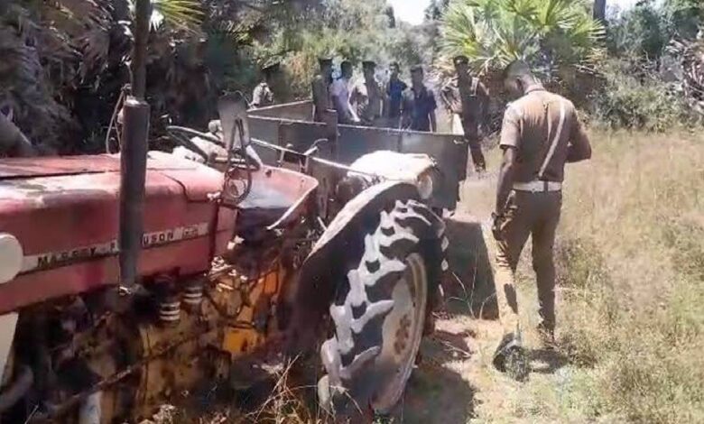 உழவு இயந்திரத்தைச் செலுத்திய பிரதான சந்தேகநபர் தொடர்ந்தும் தலைமறைவாக உள்ள நிலையில், அவரைப் பிடிப்பதற்கான தேடுதல் நடவடிக்கைகளை பொலிஸார் முன்னெடுத்து வருகின்றனர்.