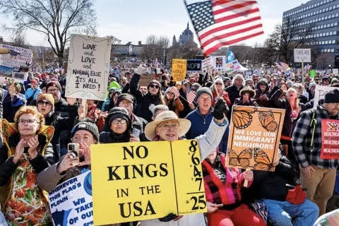 எமக்கு அரசர்கள் வேண்டாம் என்ற போராட்டத்துல் 90 இலட்சம் பேர் வீதியில் இறங்கிப் போராட்டம் நடத்தினர். அமெரிக்காவின் 3000 நகரங்களில் கடந்த சனிக்கிழமை மார்ச் 28இல் வீதிகளில் மக்கள் இறங்கி போராட்டத்தில் ஈடுபட்டனர்.