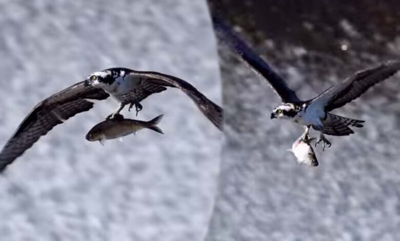 கழுகு ஒன்று மீனை வேட்டையாடி வானில் மிகவும் அழகாக பறந்து செல்லும் காட்சி பார்வையாளர்களை மீண்டும் மீண்டும் பார்க்க வைத்துள்ளது.