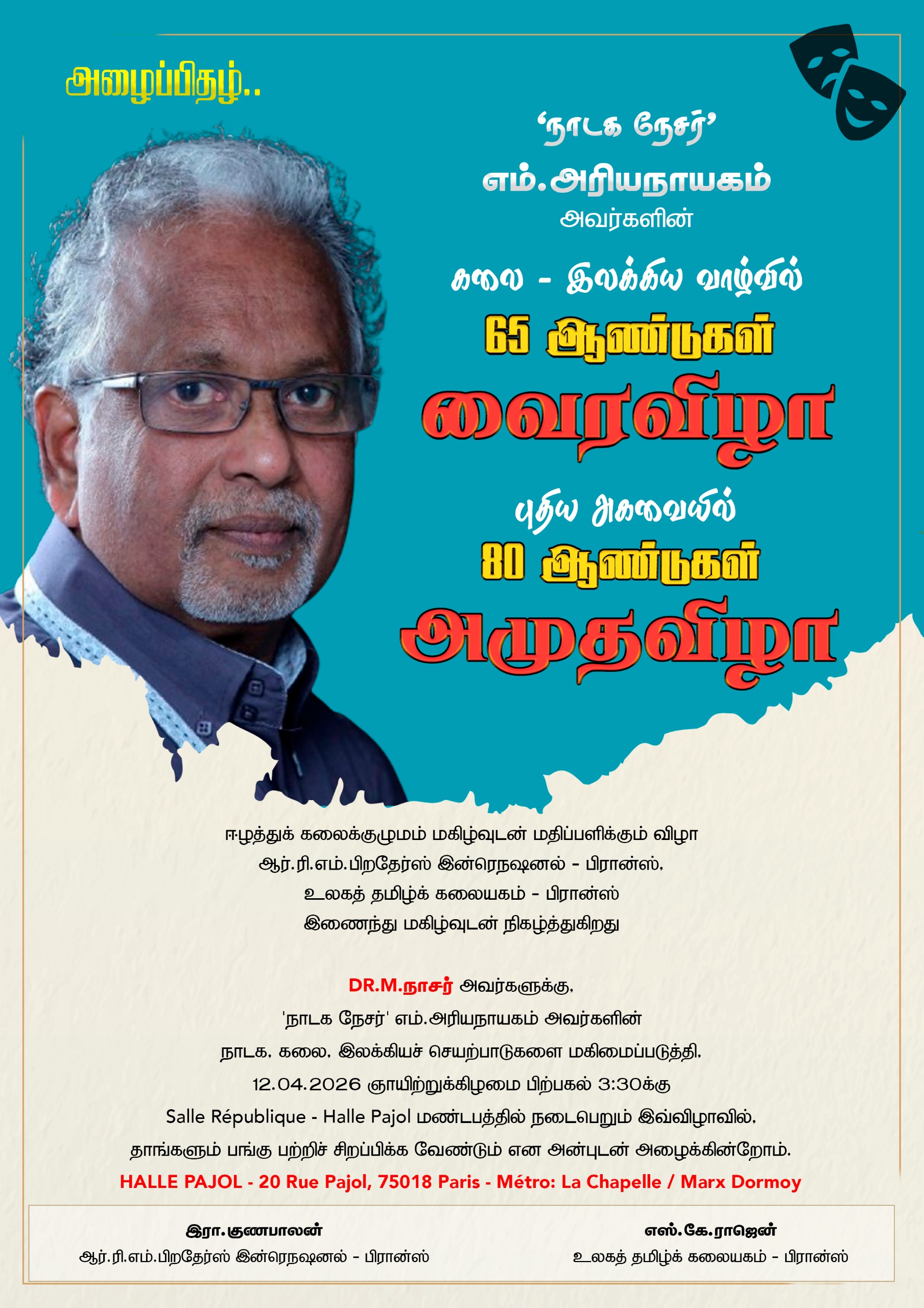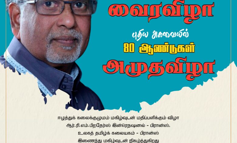 நிகழ்வுகள்கலை – இலக்கிய வாழ்வில் 65 ஆண்டுகள் வைரவிழா; புதிய அகவையில் 80 ஆண்டுகள் அமுதவிழாApril 5, 20260 April 5, 20260 Facebook Twitter LinkedIn Messenger Messenger WhatsApp Viber