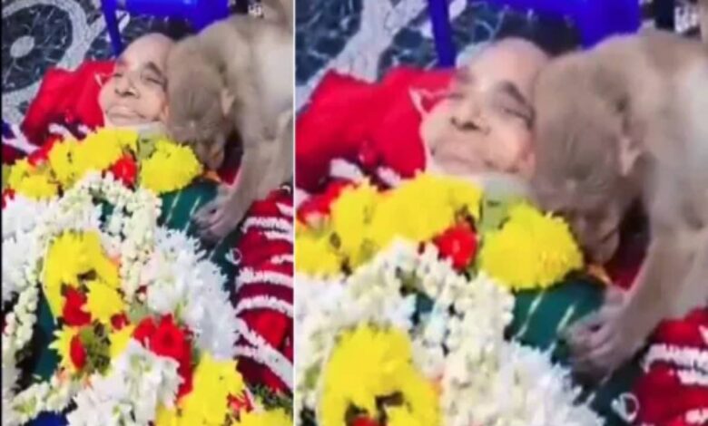 80 வயது மூதாட்யை கட்டி தழுவி அஞ்சலி செலுத்திய குரங்கு – படு வைரலாகும் காணொளி