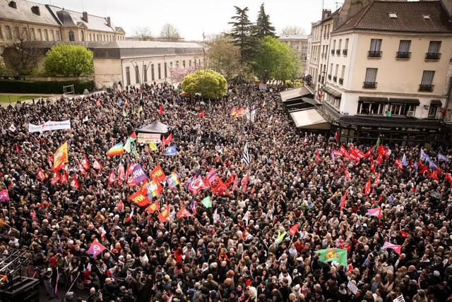 இதற்கு எதிராக சென்ட்-டெனிஸ் நகர மண்டபத்தின் முன்பாக நடைபெற்ற பேரணியில் 10,000 முதல் 20,000 பேர் வரை கலந்துகொண்டனர். இனவெறி, இஸ்லாமோபோபியா, யூத எதிர்ப்பு மற்றும் அனைத்து பாகுபாடுகளுக்கும் முற்றுப்புள்ளி வைப்போம் என்ற முழக்கங்கள் பேரணியில் ஓங்கி ஒலித்தன.