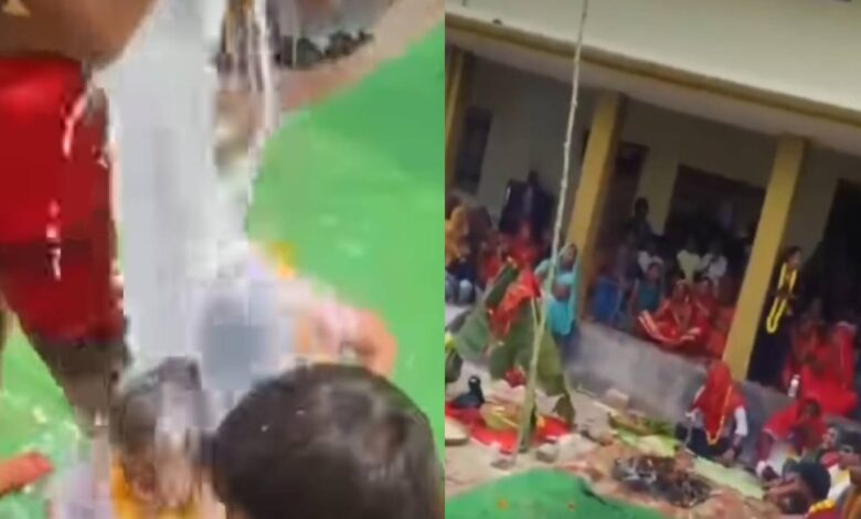 அந்த காணொளியில், பூசாரி போன்ற ஒருவர் கொதிக்கும் பாலை இரண்டு பச்சிளம் குழந்தைகள் மீது ஊற்றும் காட்சி பதிவாகியுள்ளது.