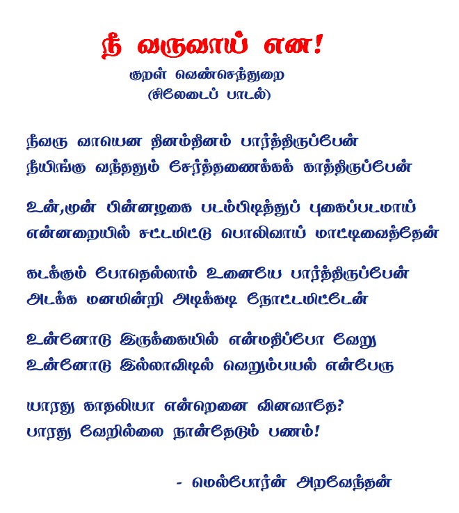 கவிதைகள்“நீ வருவாய் என!”… கவிதை… மெல்போர்ன் அறவேந்தன்April 11, 20260 April 11, 20260 Facebook Twitter LinkedIn Messenger Messenger WhatsApp Viber