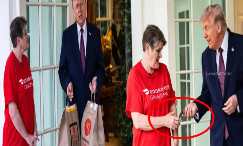 ஆர்கன்சாஸைச் சேர்ந்த “டோர் டேஷ்” என்ற ஒன்லைன் நிறுவனத்தின் ஓட்டுநரும் குடியரசு கட்சியின் ஆதரவாளருமான ஷரோன் சிம்மன்ஸ் என்பவர் ஓவல் அலுவலகத்துக்கு சென்று ட்ரம்பிடம் குறித்த துரித உணவுகளை வழங்குவது போன்ற படங்கள் மற்றும் வீடியோக்களை ட்ரம்ப் தனது சமூக ஊடக தளத்தில் பதிவேற்றினர்.